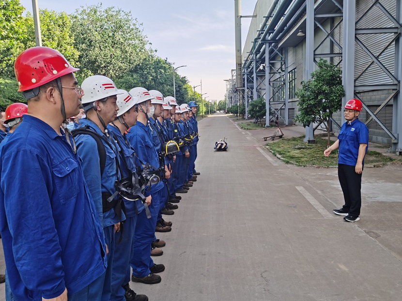 本次演練在公司安全總監侯國棟的一聲令下,演練拉開序幕,由公司應急救援隊組成的現場作業組、應急救援組、疏導警戒組、醫療救護組等4組演練人員開展救援工作,相繼展示了事故發生后的事故報告、現場秩序維護、氣體檢測、救援三腳架搭設、安全防護裝備佩戴、通風設備使用、人員救護等應急處置全過程。