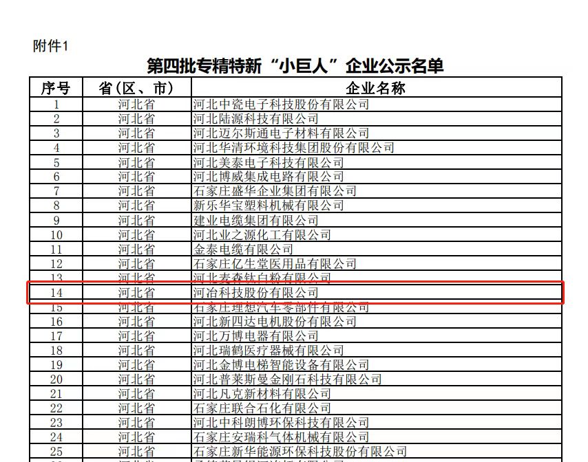 2022年國(guó)家工信部第四批專精特新“小巨人”企業(yè)已完成公示,河冶科技股份有限公司通過(guò)嚴(yán)格的審核,獲得國(guó)家級(jí)專精特新“小巨人”認(rèn)定。這是繼獲得河北省專精特新示范企業(yè)榮譽(yù)稱號(hào)后,首次獲得國(guó)家級(jí)“小巨人”的認(rèn)定,體現(xiàn)了公司在專、精、特、新四個(gè)領(lǐng)域的長(zhǎng)足發(fā)展。