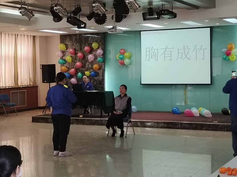 河冶住商的女工們歡聚在住商五樓多媒體大廳里,舉辦溫情茶話會(huì)---公司領(lǐng)導(dǎo)認(rèn)真聽取女工意見,當(dāng)場(chǎng)安排解決女工提出的各種問題。趣味小游戲---“心有靈犀”、“盲人敲鼓”,參賽者真情演繹,逗得觀眾捧腹大笑,并通過三輪抽獎(jiǎng),抽取了6名幸運(yùn)女工。